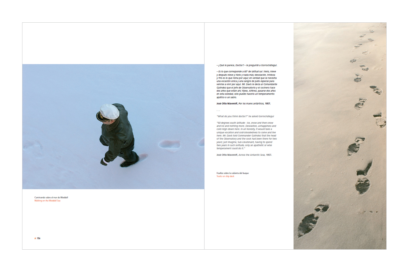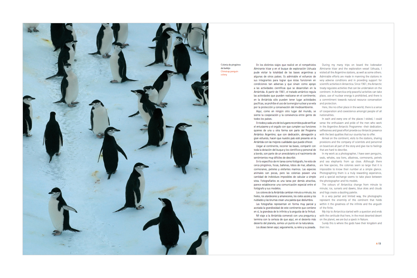 Las fotografías de Marcelo Gurruchaga reflejan la naturaleza, geografía e historia del lugar. Sus paisajes, su fauna, lo inaccesible de muchos de sus puntos geográficos, hacen de la Antártida un lugar anhelado y deseado.